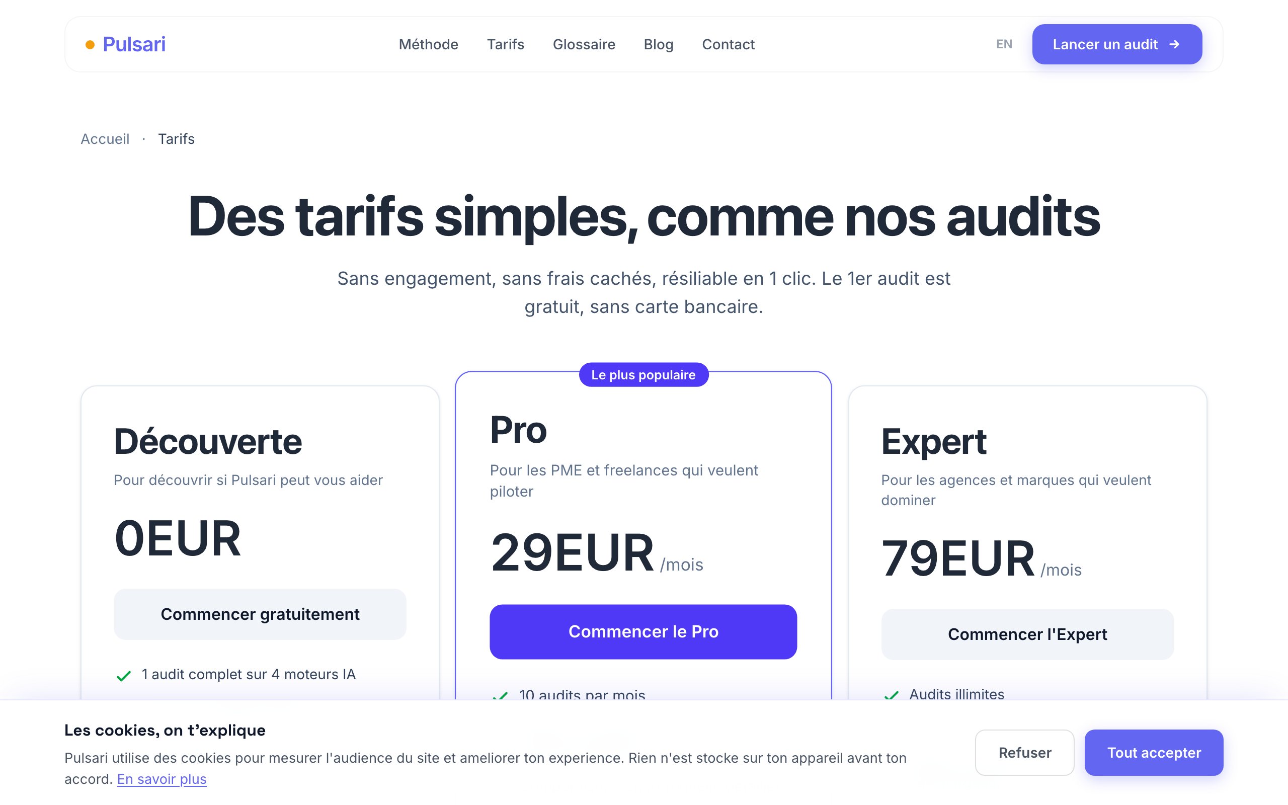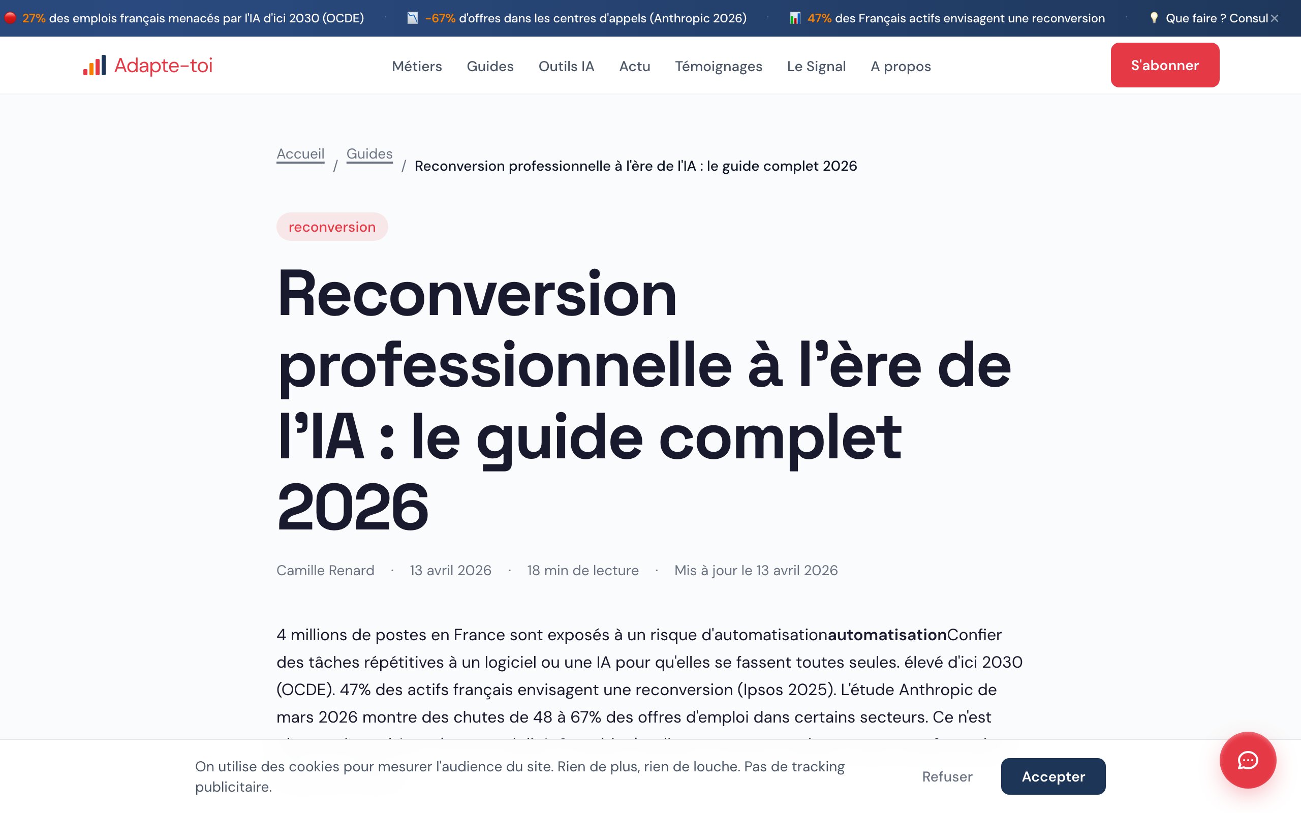 → 69 pages live, 25 metiers, 10 guides, bot orientation.